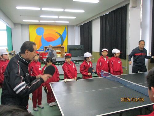 勝山地区社協の方々に来ていただき、卓球の基本的な打ち方を教えていただきました。 ラケットの持ち方、ボールの打ち方を学びました。 「打てるようなった!」「ラリーが続くのがおもしろい!」という声が聞かれました。 ラケットとボールを寄贈していただき…