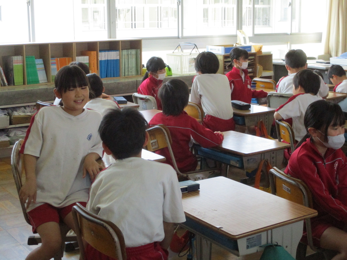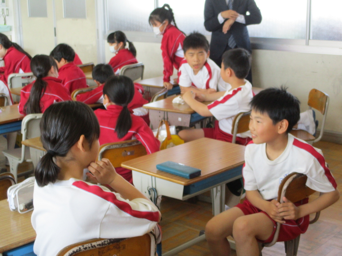 ◇1時間目の授業の様子。4年生は道徳でいろんな聴き方を2人一組で役割演技をして、「心地よい聴き方」について考えました。