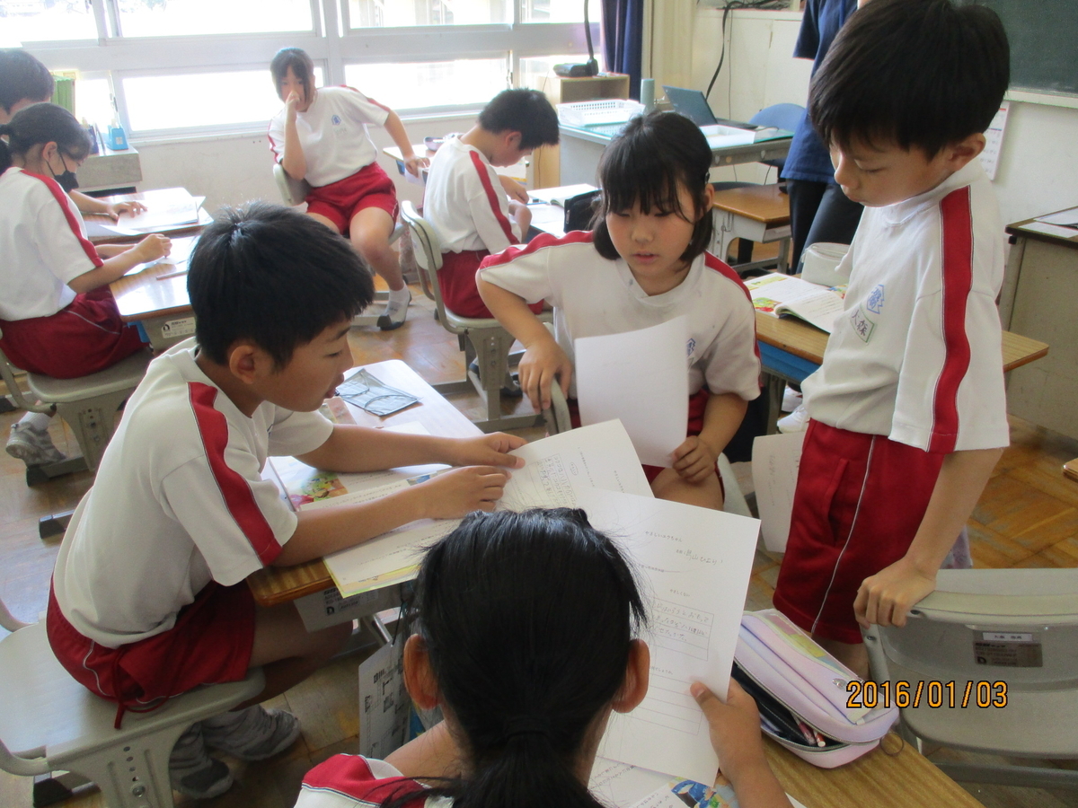 主人公のとった行動はやさしいといえるのかを班で話し合いました。