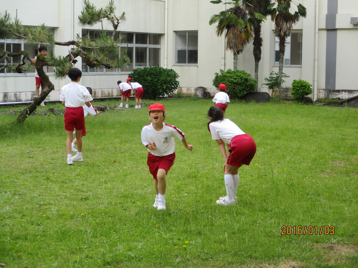 ▲大昼休みの様子 6年生と1年生が一緒におにごっこをしていました