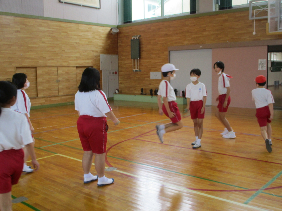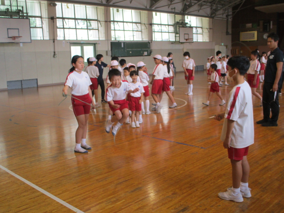 2025-06-03 6月3日(火)レッツ大なわ! ◇今日の大休みは、今年度初めての「レッツおおなわ」でした。赤・青・黄・緑のたてわり班ごとに、大廊下や体育館で練習をしました。高学年の子が低学年の子にとび方のタイミングやコツをアドバイスしながら、みんなで楽しくとんでいました。
