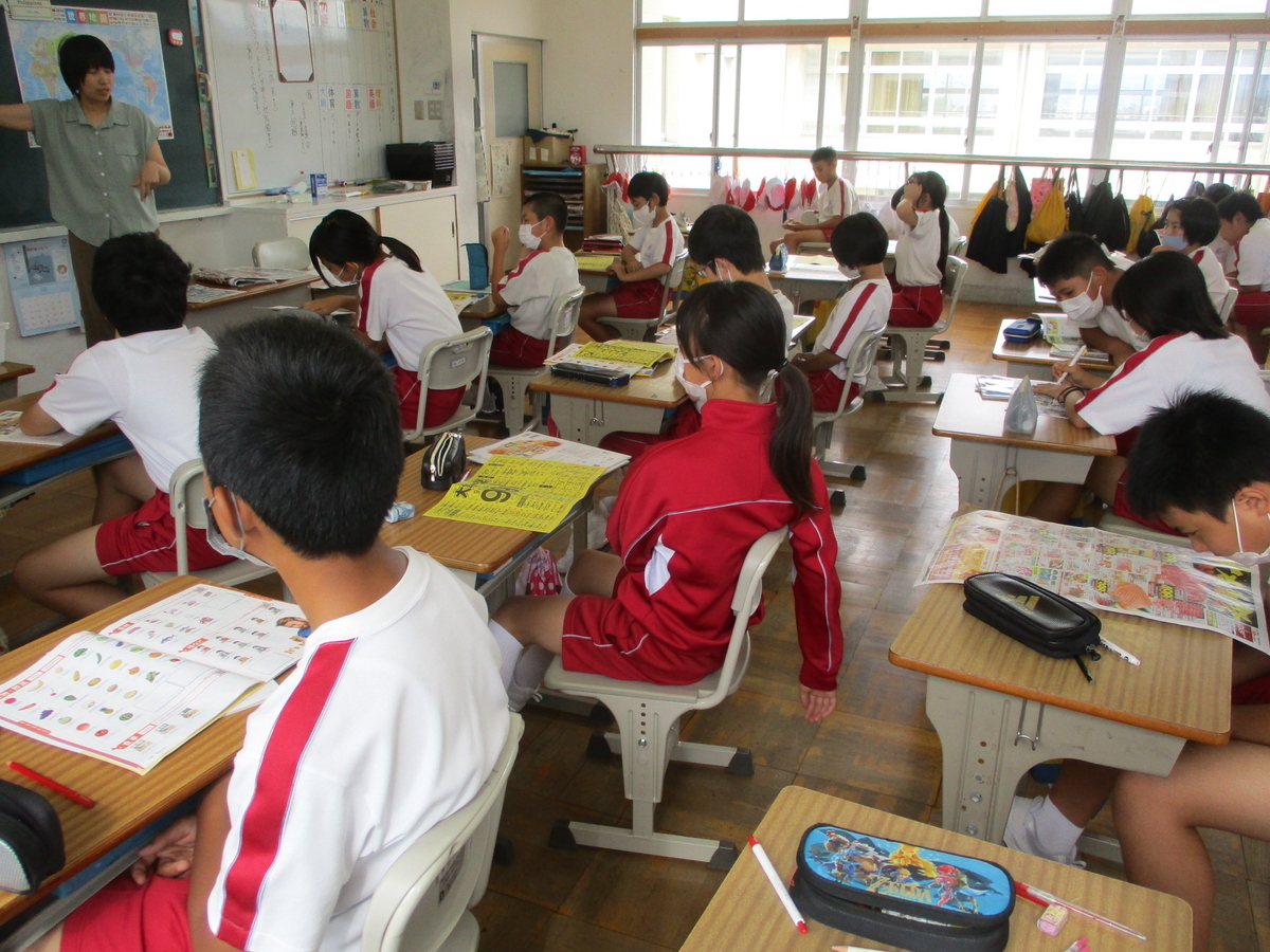 ▲1-2体育 前回りの練習をしました ▲6-2英語 世界の国々