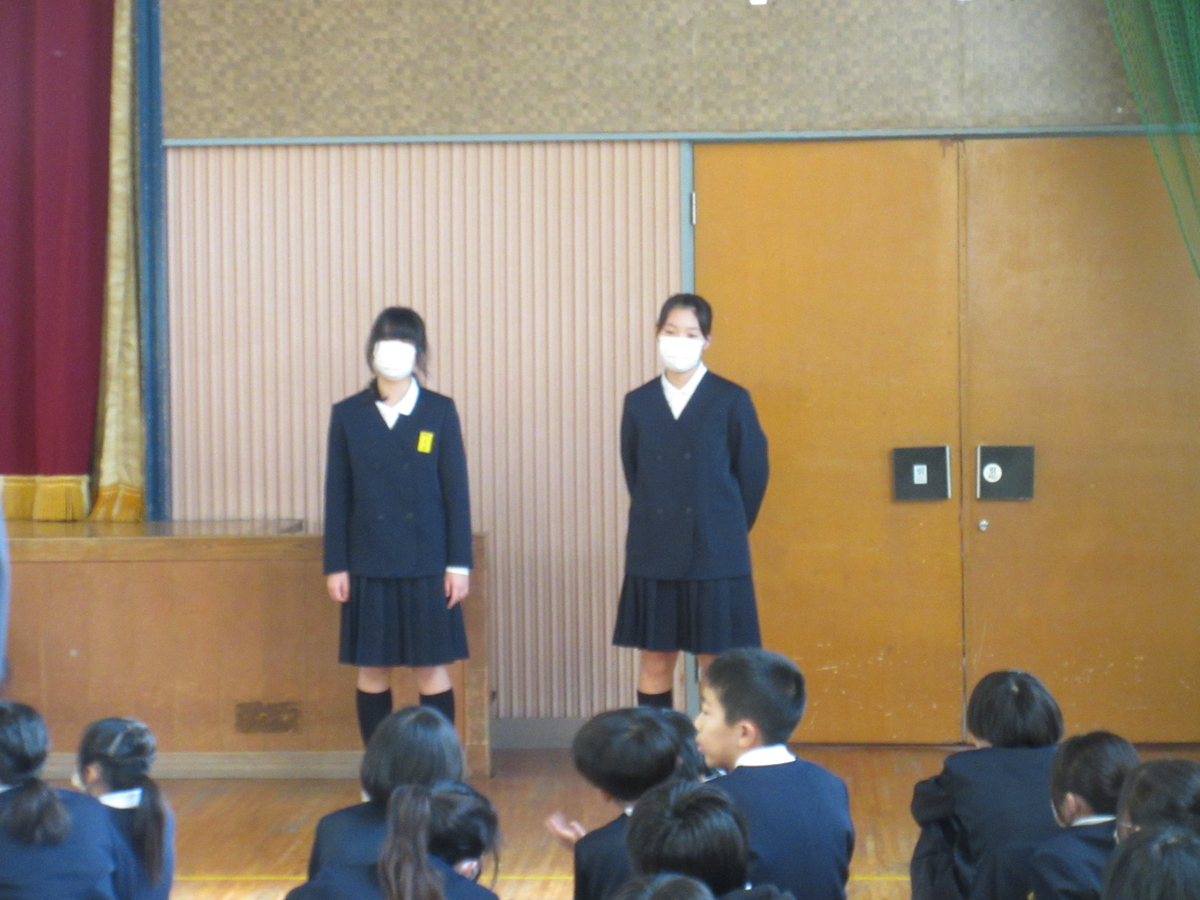 ▽生活委員会から朝のあいさつ運動をがんばっている子の表彰がありました